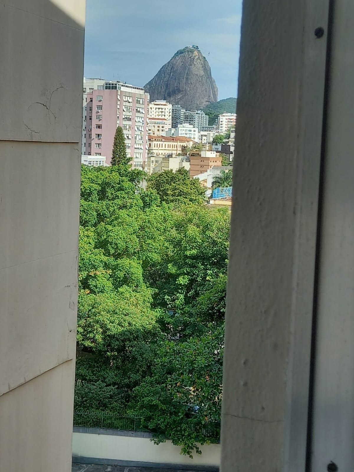Laranjeiras! Apartamento excelente, de frente, andar alto (correspondendo ao oitavo andar), com vista livre, claro e arejado. Distribuído em pequeno hall de entrada, sala ampla com acesso a agradável varanda com cortina de vidro e toldo, 2 quartos sendo 1 suite de muito bom gosto, ambos os quartos com armários planejados de qualidade e jardineiras nas janelas, 1 banheiro social, os 2 banheiros com box blindex, espaçosa cozinha, área de serviço com armário e com vista para o Pão de Açúcar ao longe, dependências completas de empregada, tendo o quarto excelente armário, permitindo otimizar a arrumação. Direito a uma vaga de garagem na escritura. Edifício muito bem administrado, hall com 2 apartamentos por andar, portaria 24h, play agradável, salão de festas, alguns aparelhos de ginástica, churrasqueira e bicicletário. Perto de todo o comércio de Laranjeiras, e com mobilidade total para os demais bairros da cidade.