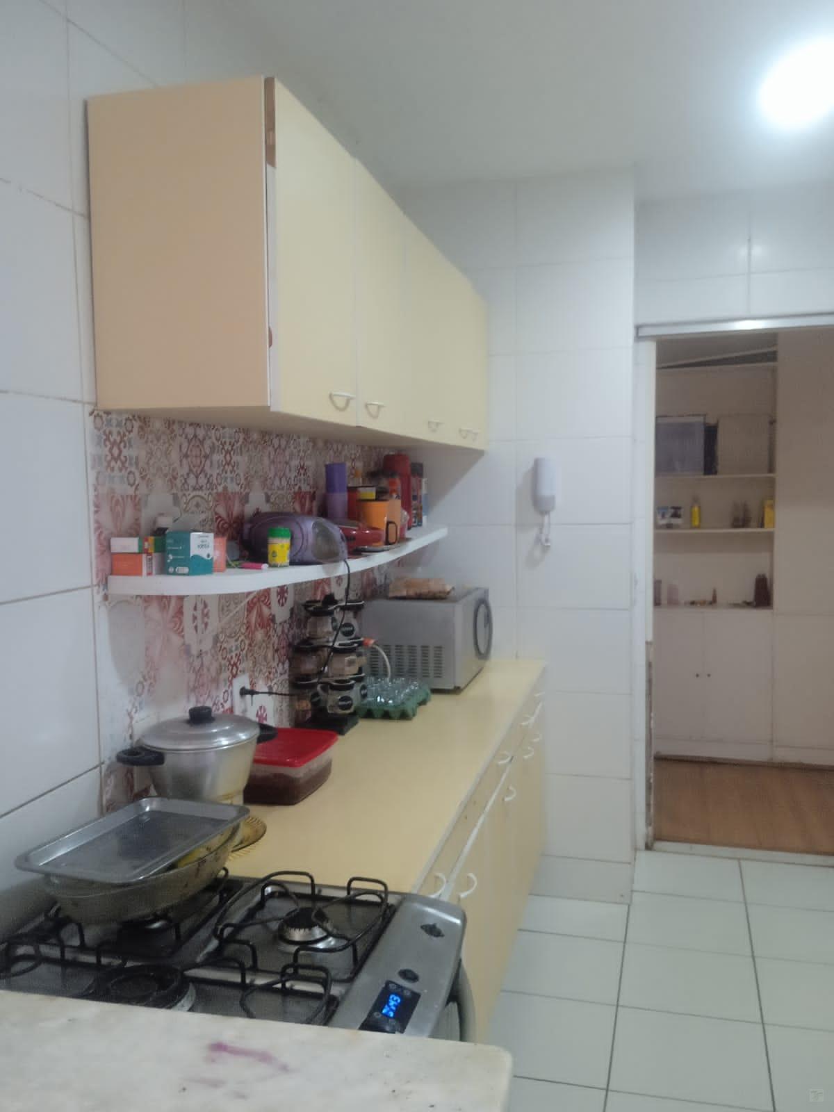 Ótimo apto. fundos, silencioso, claro e arejado, em bom estado de conservação, sendo composto por uma ampla sala para dois ambientes, três bons quartos com armários, sendo um com suíte, banheiro social, cozinha espaçosa com armários planejados e dependências completas.