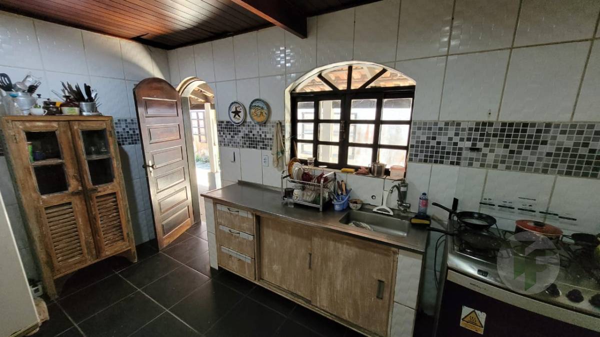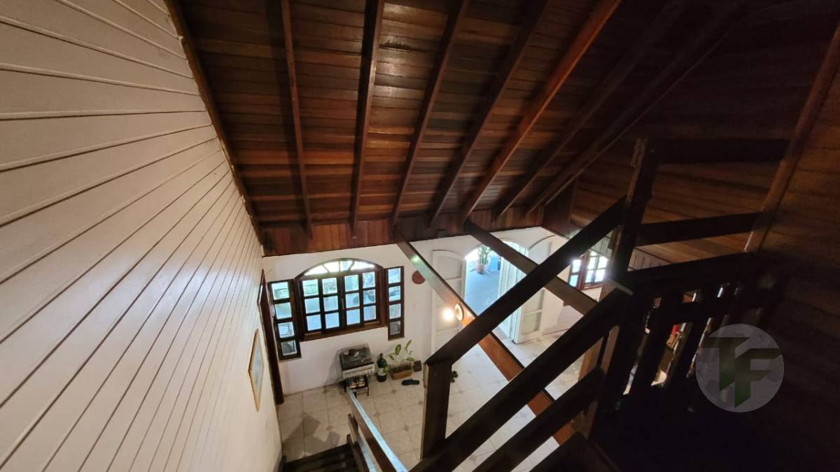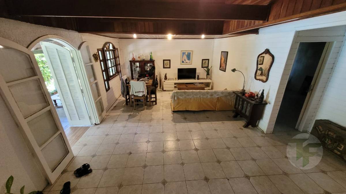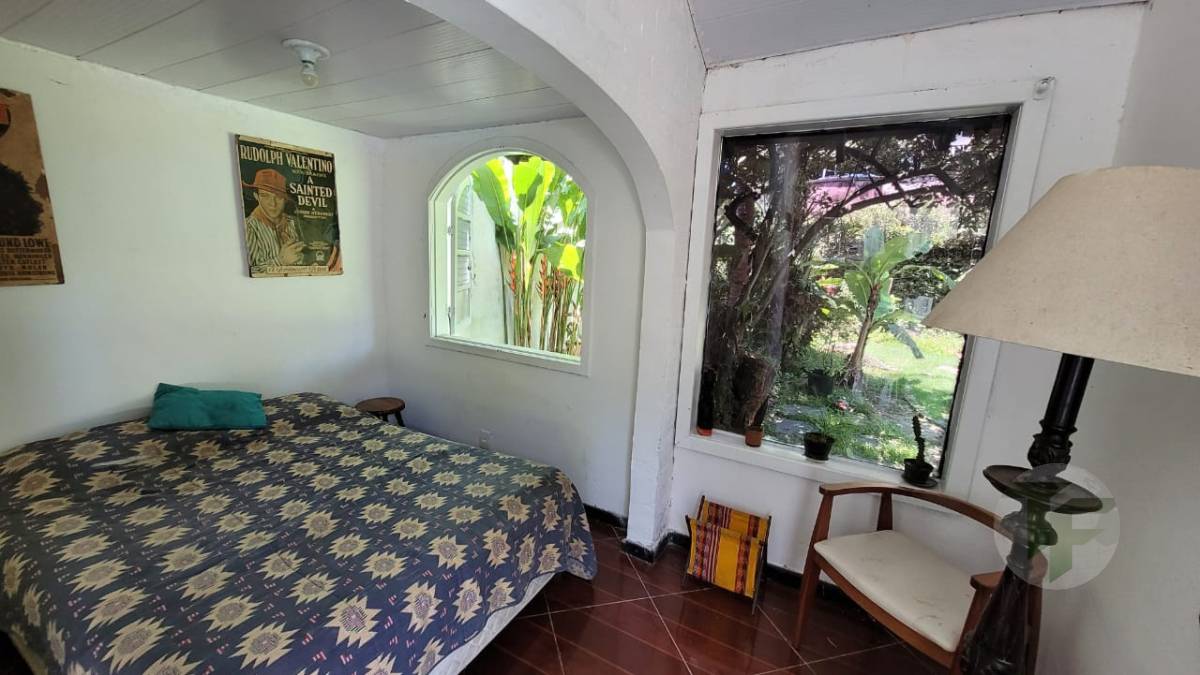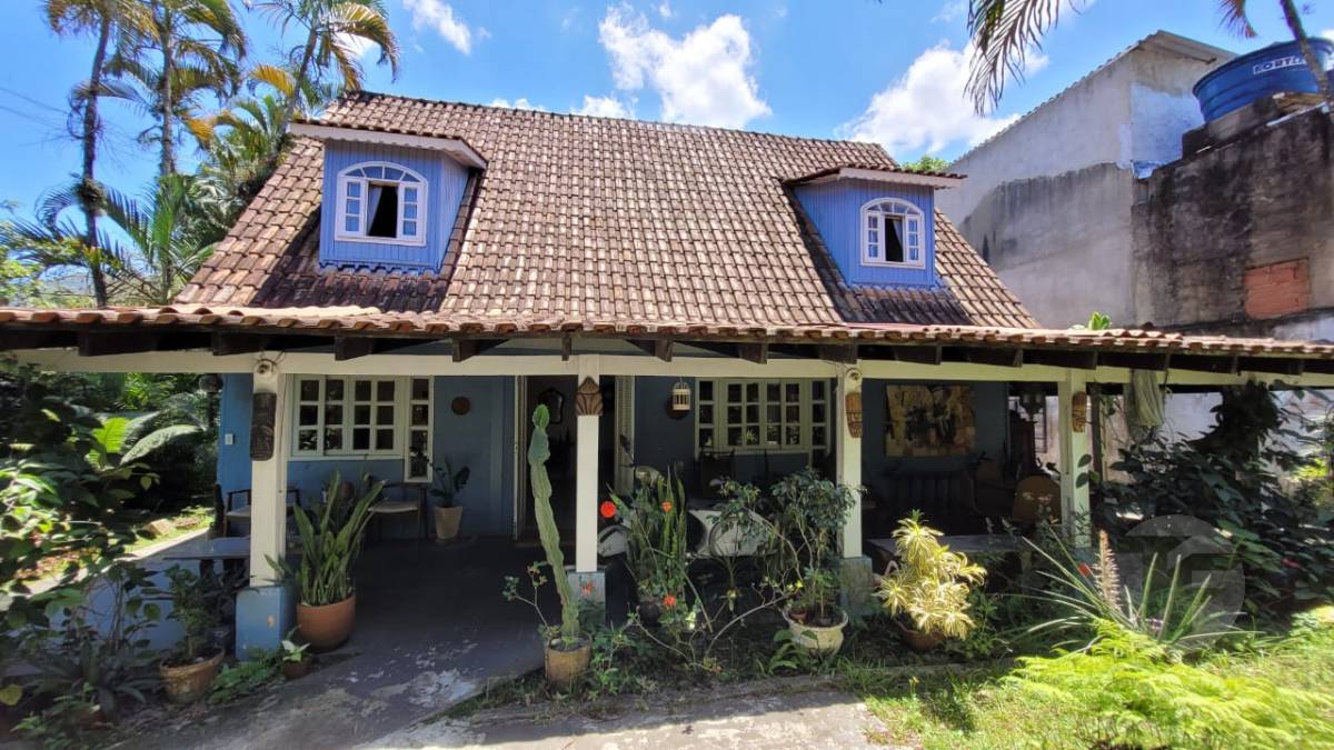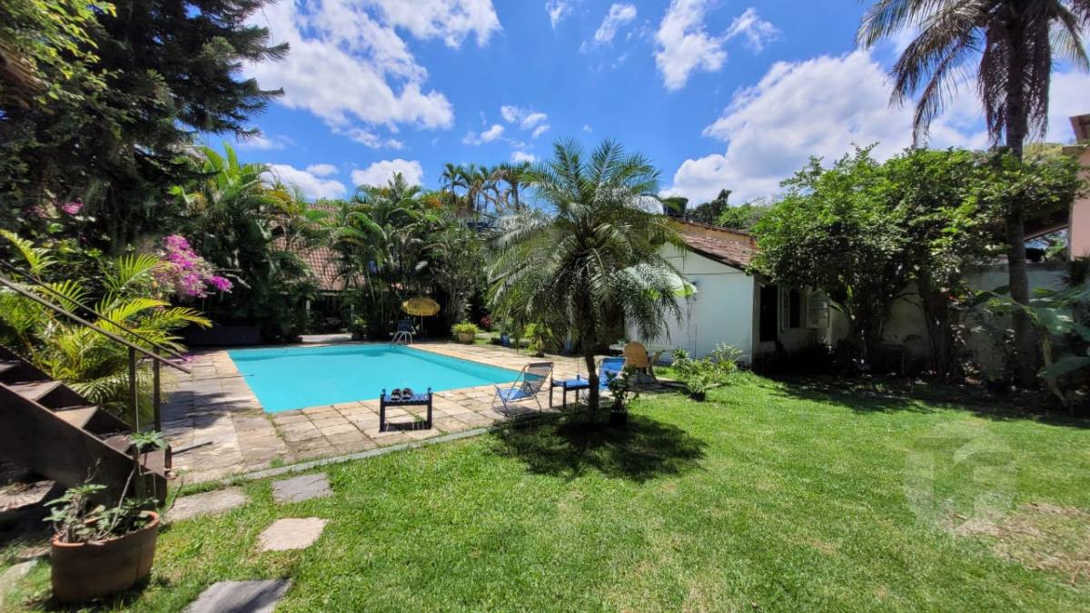 Excelente casa duplex oferecendo uma bela sala para vários ambientes, três quartos, sendo duas suítes, banheiro social, cozinha com área de serviço, varanda, área externa com piscina, ampla área verde e árvores frutíferas. Duas casas de hóspedes e mais uma casa de serviço.