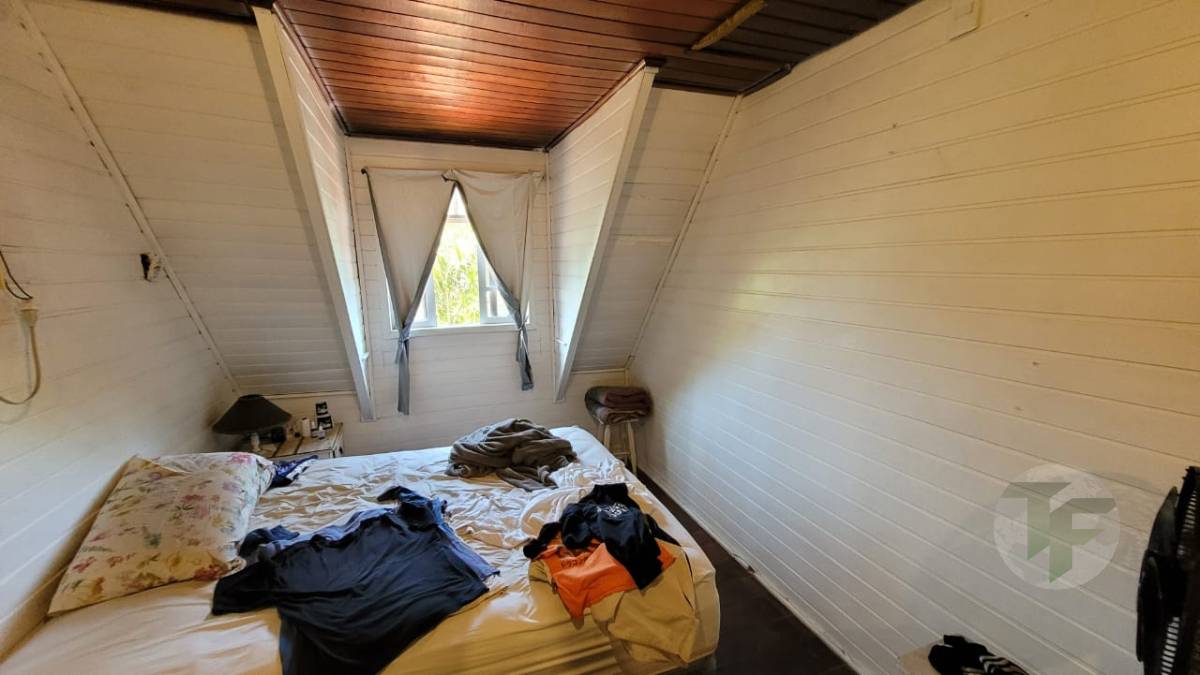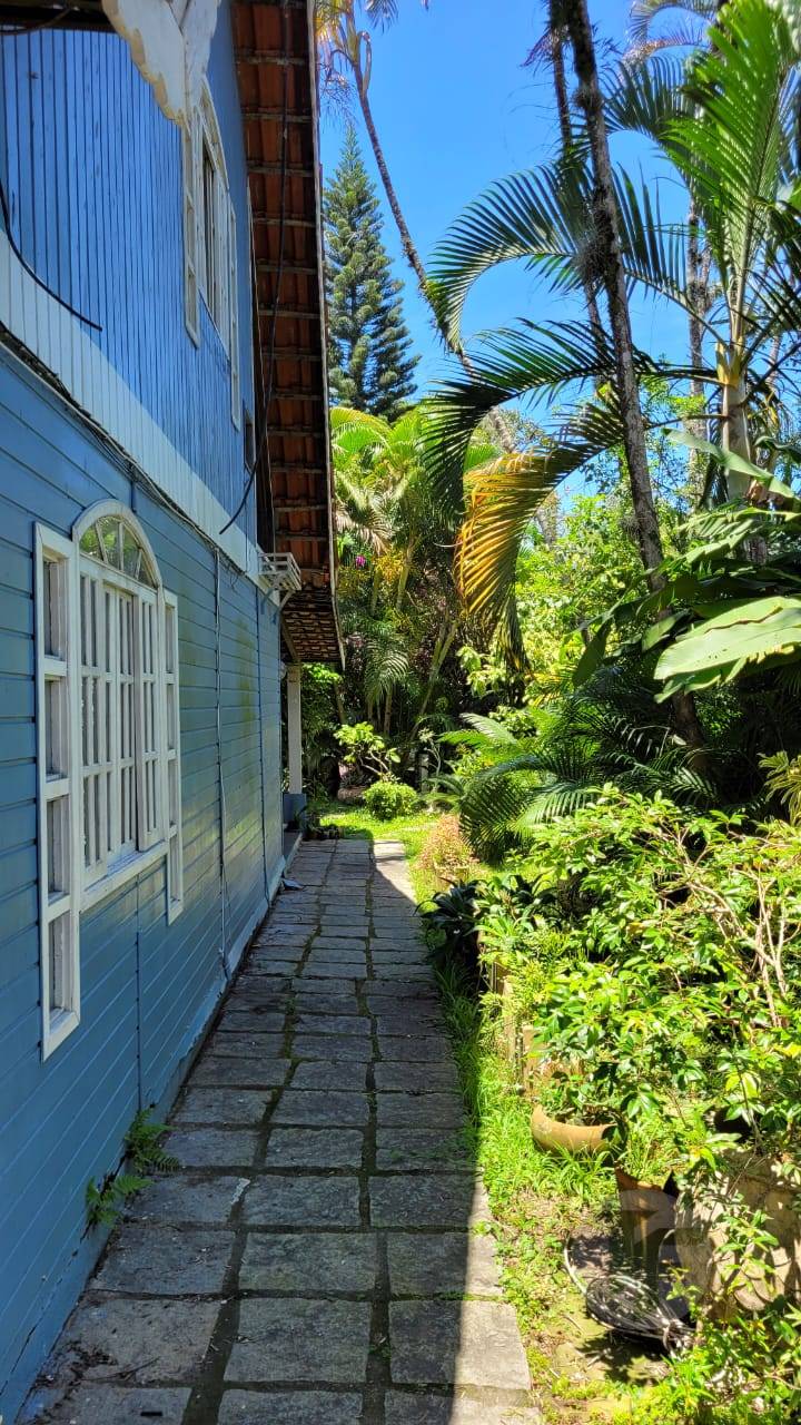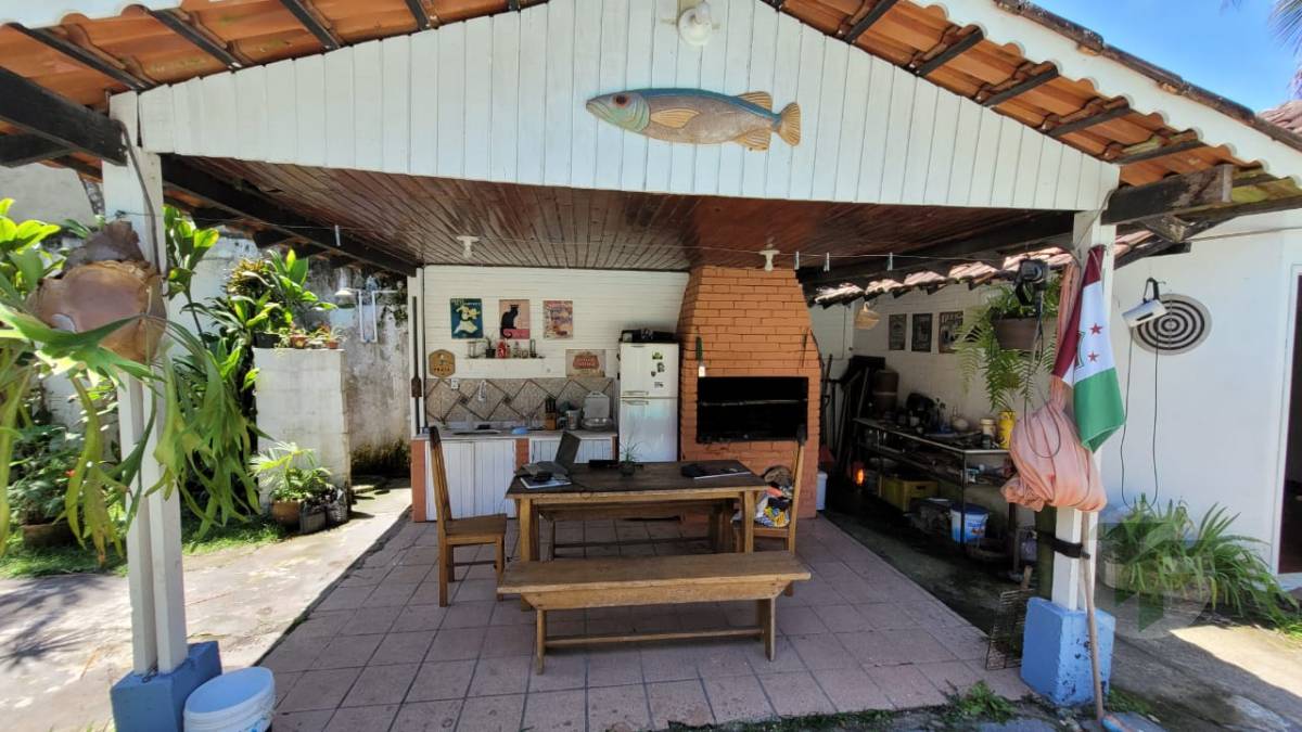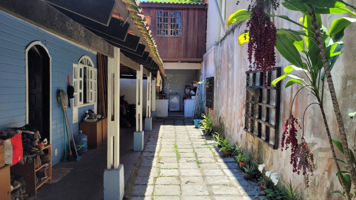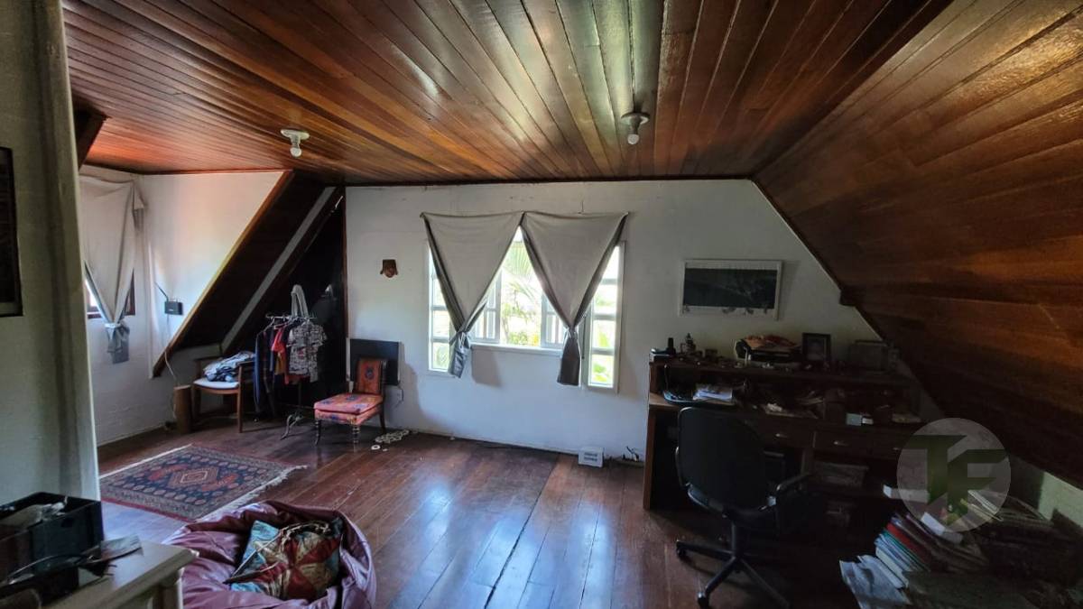 Excelente casa duplex oferecendo uma bela sala para vários ambientes, três quartos, sendo duas suítes, banheiro social, cozinha com área de serviço, varanda, área externa com piscina, ampla área verde e árvores frutíferas. Duas casas de hóspedes e mais uma casa de serviço.