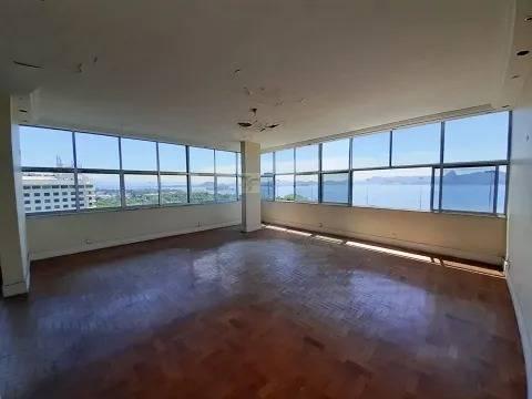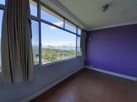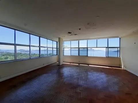 PRAIA DO FLAMENGO - VISTA PANORÂMICA- COBERTURA DUPLEX , Frente , andar alto, claro e arejado , sol da manha , em um dos melhores prédios da região, apartamento com ótima planta , em seu PRIMEIRO PISO, temos 2 salões todo em piso taco , com uma vista maravilhosa para praia do flamengo. Em sua extensão, temos mais 4 quartos amplos, mesmo piso todos com vista para o verde e mar, 3 banheiros , cozinha ampla, com armários, área de serviço, dispensa e dependências completa. em SEGUNDO PISO temos um amplo salão com acesso a varanda fechada em blindex, banheiro, cozinha, e uma excelente área externa descoberta com uma vista cinematográfica, e também um ótimo verde do jardim do palácio. o imóvel possui 2 vagas na escritura. precisando de obra geral , aceita proposta. ótimo imóvel