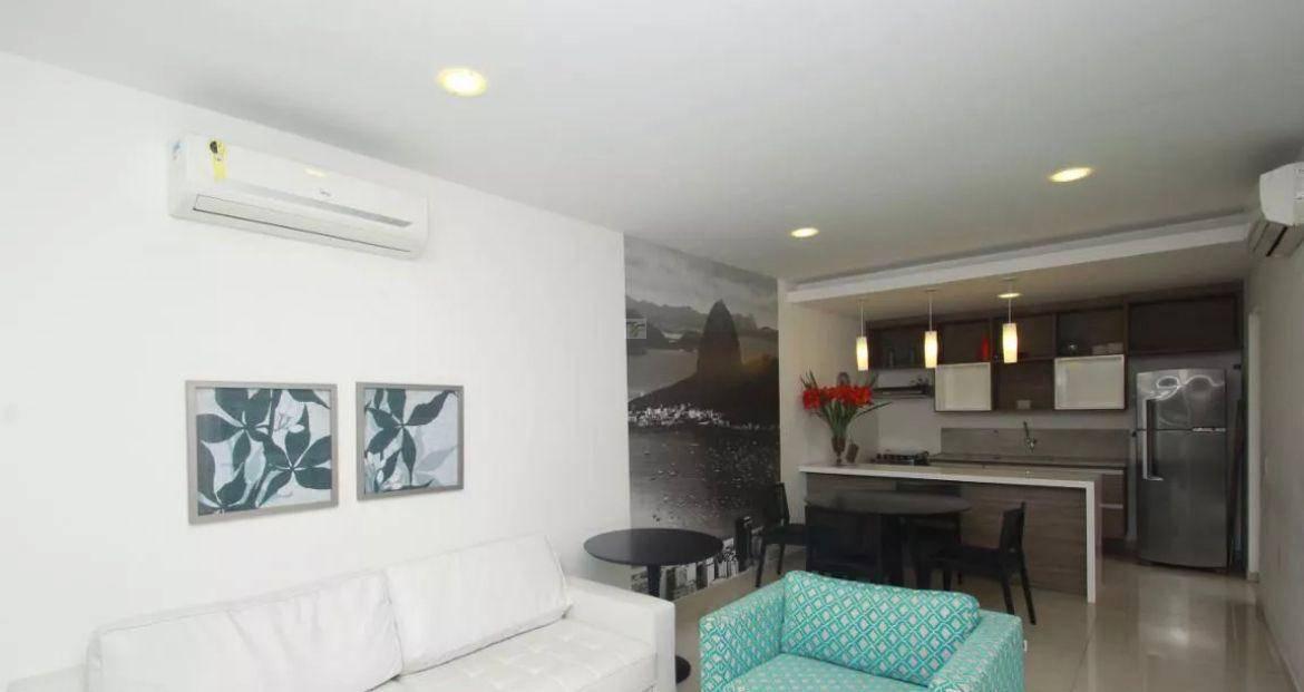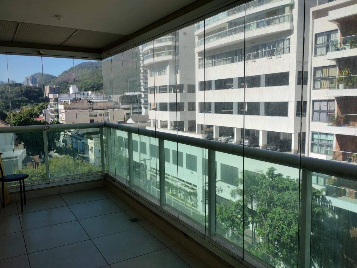 Excelente apartamento, claro, arejado, em ótimo estado de conservação, todo em porcelanato, sem mobília, vista para o Cristo, sendo composto por uma bela sala para dois ambientes com uma generosa varanda com cortina de vidro, dois quartos com duas suítes, banheiro social e cozinha integrada com área de serviço.