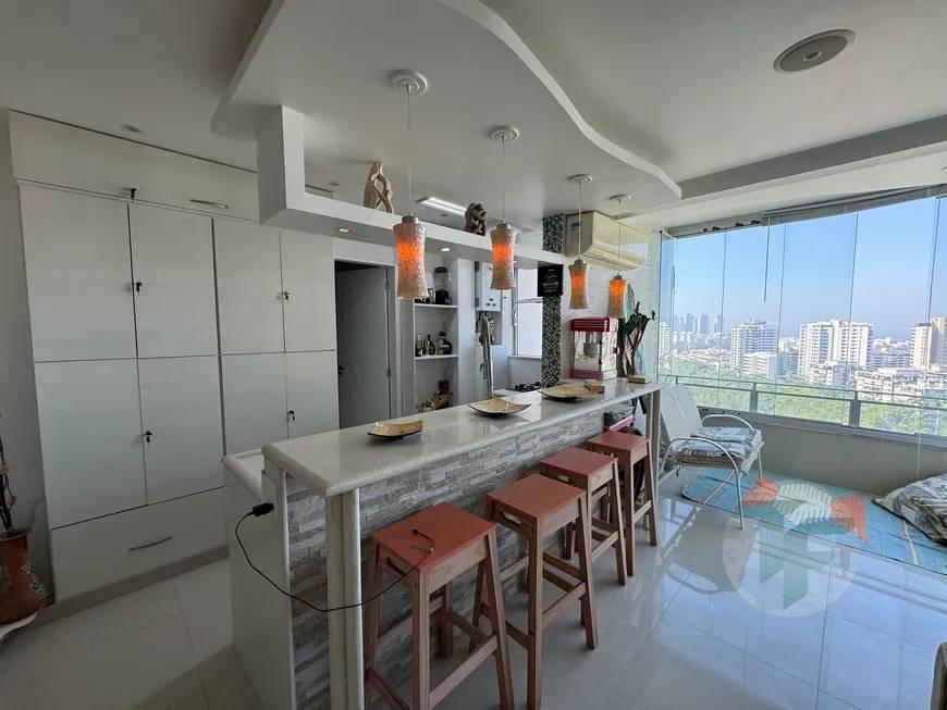 Excelente apartamento, andar alto, claro, arejado vista livre para o oceano e Pedra da Gávea, sol da manhã, sendo composto por salão para dois ambientes com uma ótima varanda integrada e fechada com cortina de vidro, cozinha gourmet em conceito aberto com àrea de serviço, banheiro social e dois quartos com armários embutido, sendo uma suíte.