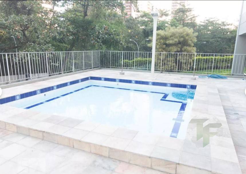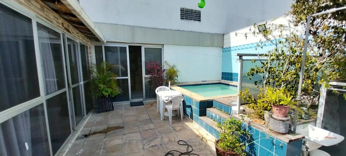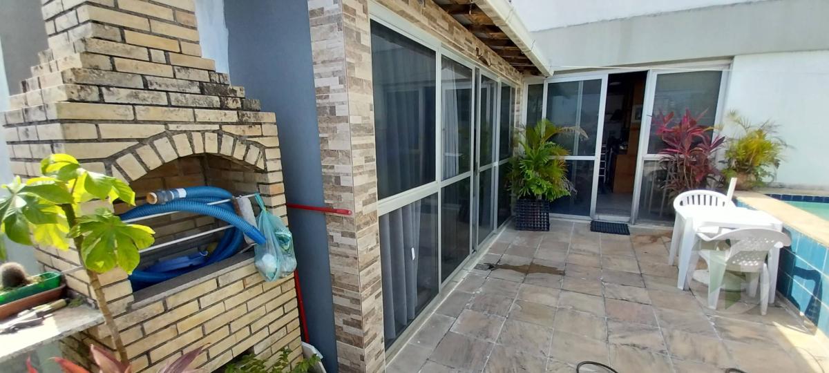 Terraço com piscina e churrasqueira.
