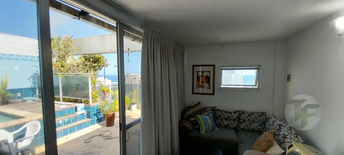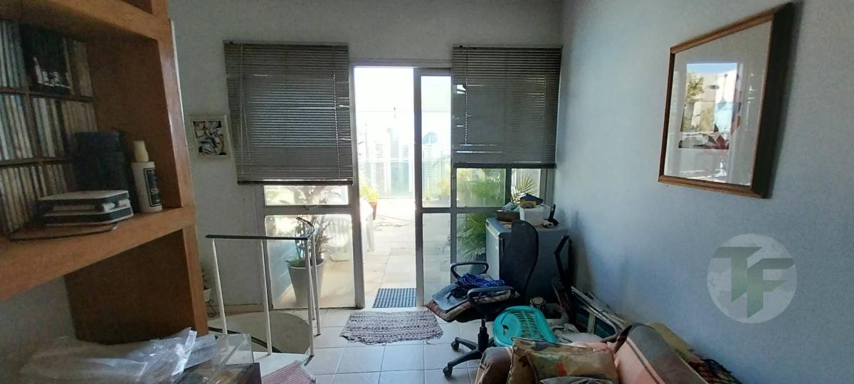 Cobertura duplex com 2 salas, banheiro social, cozinha.